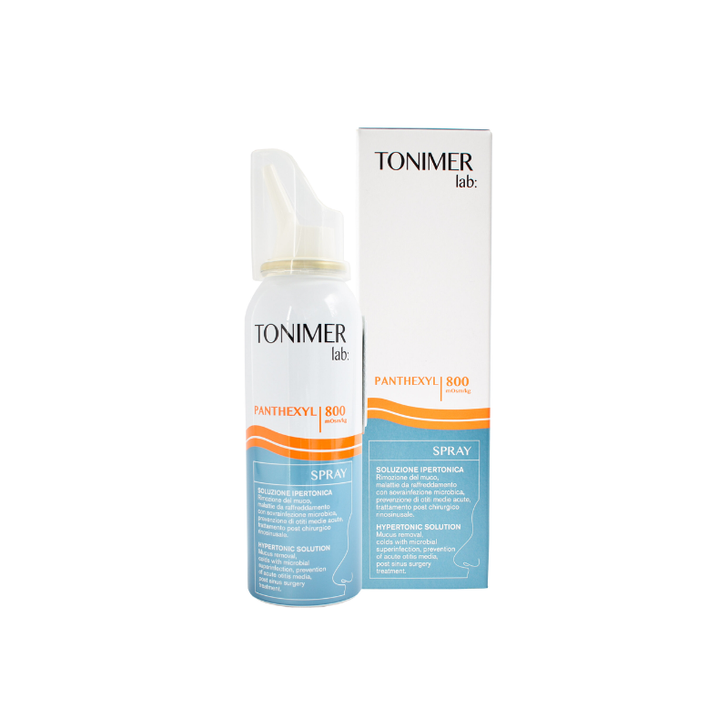 Tonimer Lab Panthexyl spray es una solución hipertónica de agua de mar, para remover y fluidificar el moco en los conductos nasales, Adecuado para adultos y niños mayores de un año enfermos con gripe e infección bacteriana como rinofaringitis y rinosinusitis, en la prevención de otitis media aguda con acumulación de moco y en el tratamiento post quirúrgico rinosinusal.