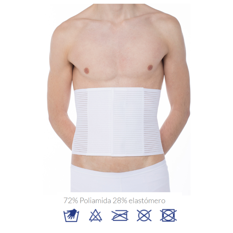 Tejido elástico con monofilamentos que permite su adaptabilidad al cuerpo. Velcro ajustable 20 cm.