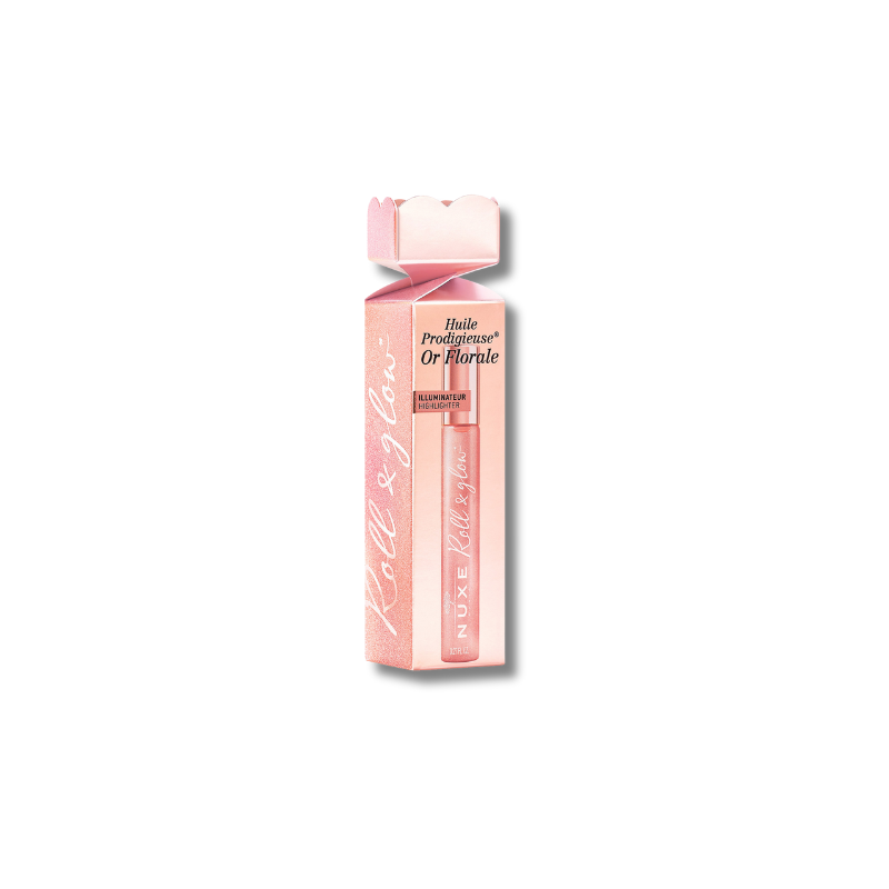 Brilla estas fiestas con el icónico aceite con brillo rosado para rostro y escote, Huile Prodigieuse® Or Florale en formato roll-on, ideal como regalo de Navidad.