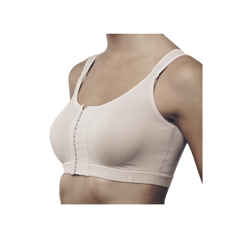 El Sujetador Mamoplastia Compresivo con corchetes Crisvi ideal para procesos posoperatorios de mamoplastia de aumento, mastopexias, y/o reducción mamaria. También apto para llevar prótesis mamarias externas.