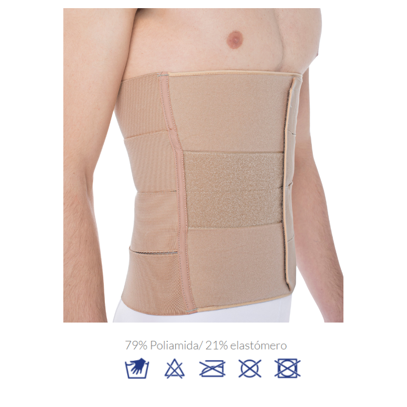 Características: Cuenta con 4 bandas elásticas que permiten una óptima adaptación a diferentes perfiles anatómicos. Indicaciones: Adecuada para el tratamiento de pequeñas y medianas eventraciones o hernias abdominales, lesiones de la musculatura abdominal, contención post-quirúrgica, rehabilitación postural y post-parto