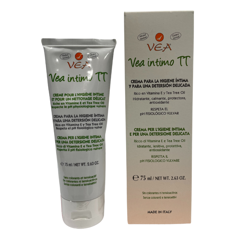 Crema para la higiene íntima diaria elaborada con Vitamina E y Aceite del Árbol del Té.El porcentaje elevado de Vitamina E, con efecto hidratante, calmante y protector, ayuda a contrastar la sequedad y a prevenir las irritaciones.El aceite esencial de melaleuca alternifolia (Tea Tree Oil) favorece la acción antimicrobiana.Recomendado para todas las mujeres, incluidas las niñas, que sufran de alteraciones de la flora bacterina vaginal.Esta crema respeta el pH fisiológico vulvar.No contiene conservantes, colorantes ni tensioactivos para minimizar el riesgo de alergias.